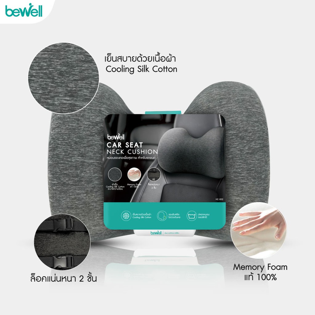 Bewell หมอนรองคอในรถ นิ่ม รองรับช่วงต้นคอ บรรเทาปวดคอระหว่างขับรถนาน เมมโมรี่โฟมแท้ 100% สายรัด double lock ล็อกแน่นขึ้น