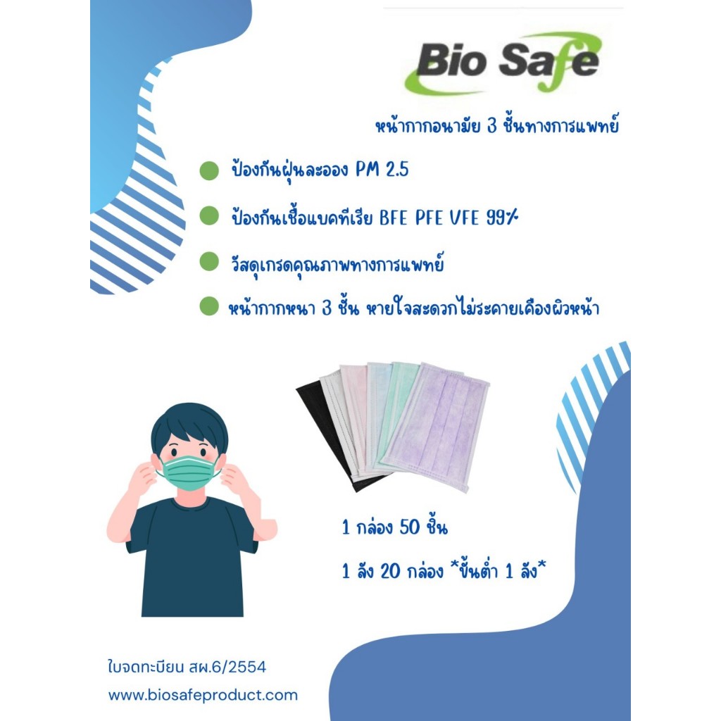 Bio Safe หน้ากากอนามัย ยกลัง 20 กล่อง