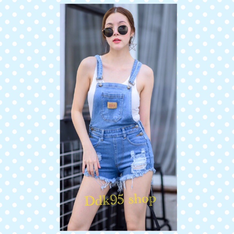 SALE‼️ ชุดเอี้ยมยีนส์ ขาสั้นแต่งขาดสุดเก๋ สียีนส์อ่อน งานป้าย2511 vintage denim