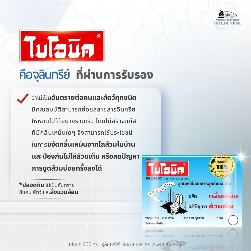 ไบโอนิค 200กรัม จุลินทรีย์ใส่ส้วม กำจัดกลิ่นเหม็น ส้วมเต็ม แก้ท่อตัน ผงล้างท่อ ชักโครกตัน Bionic
