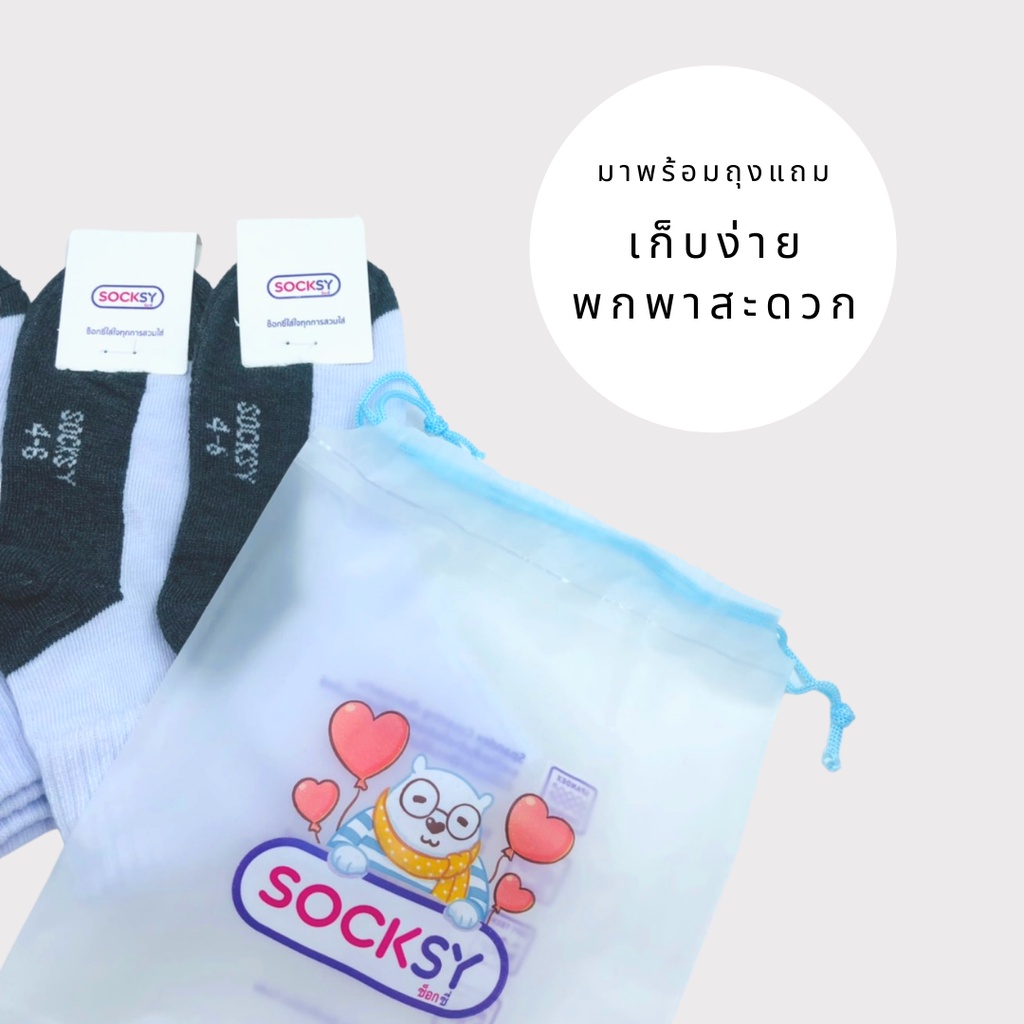 Socksy ถุงเท้านักเรียนขาวพื้นเทา รุ่น BN140 (แพ็ค12คู่, แพ็ค6คู่)