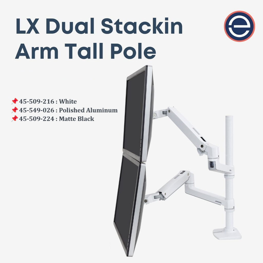 Ergotron LX Dual Stacking Arm Tall Pole Bright White / Polished Aluminum / Matte Black รับประกัน 10 ปี