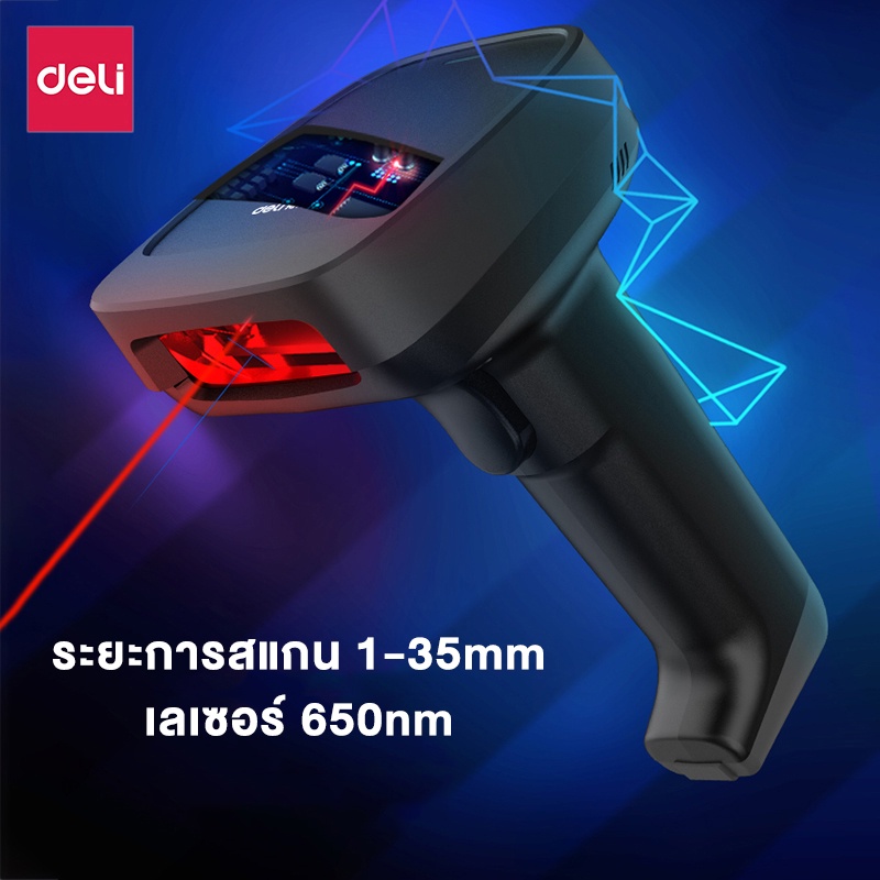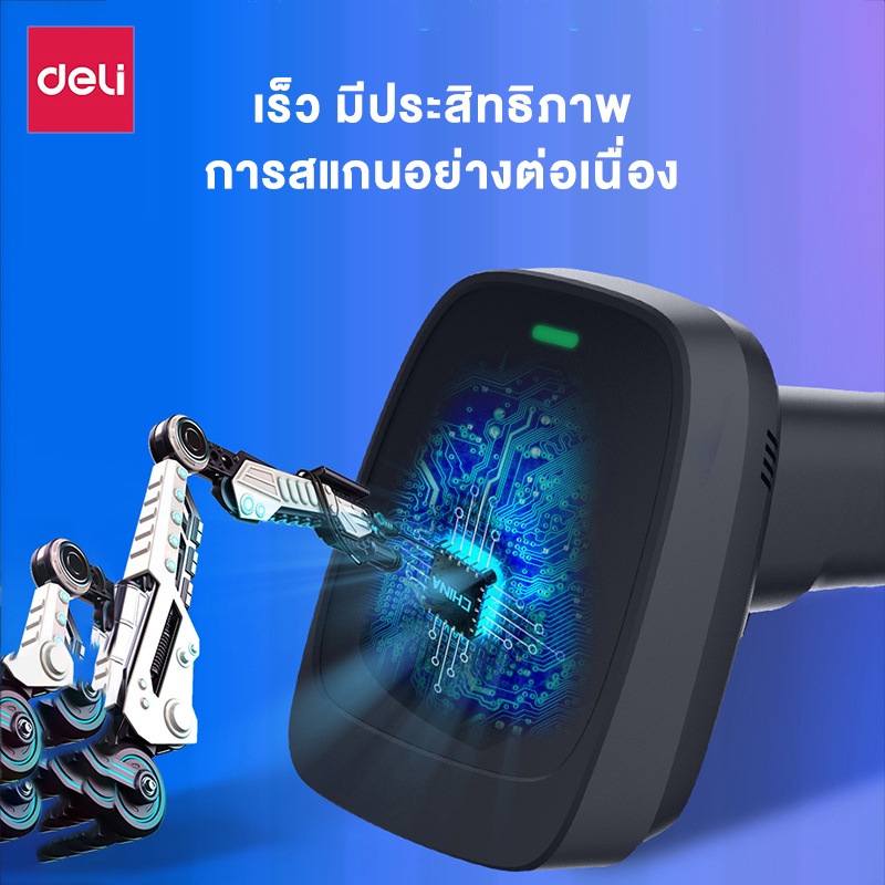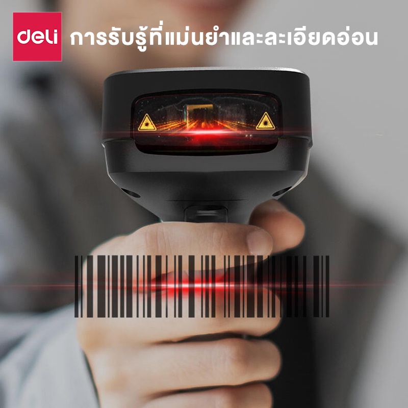 Deli เครื่องอ่านบาร์โค้ด เครื่องสแกนบาร์โค้ด 1D 2D QR ไร้สาย มีสาย ใช้ง่ายคุณภาพดี Barcode Scanner