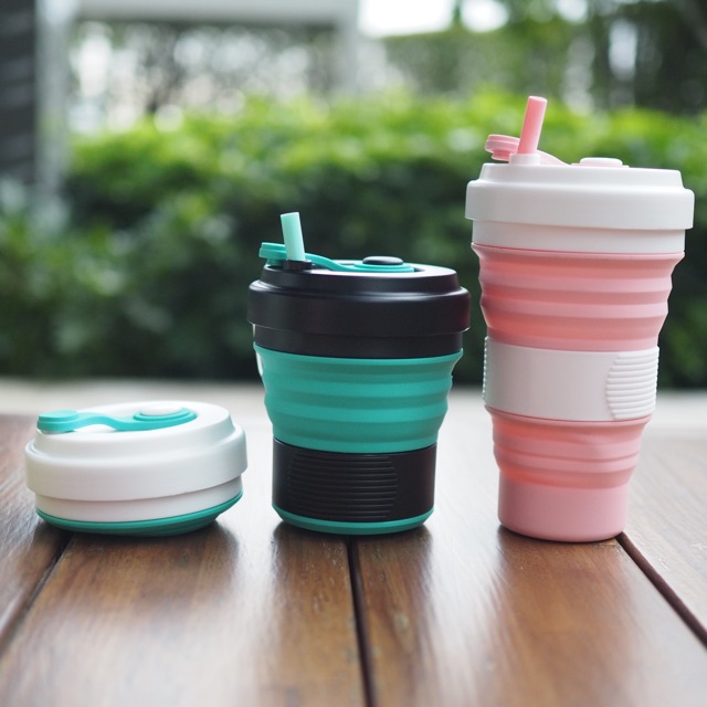 REM13 แก้วซิลิโคนพับได้ 550ml พกพาสะดวก พร้อมหลอด และสายทำความสะอาด ซิลิโคนคุณภาพดีหนา แก้วพับได้ พร้อมตัวล็อคแขวนง่าย