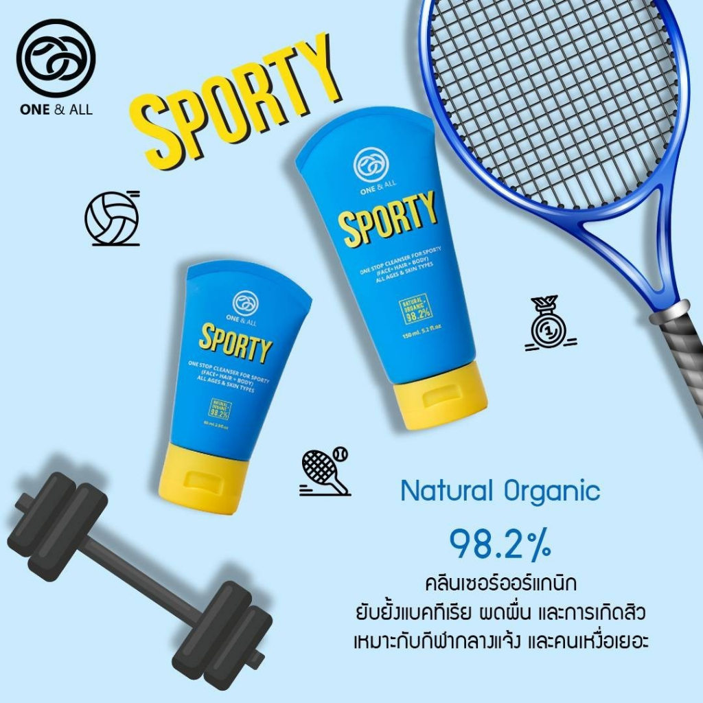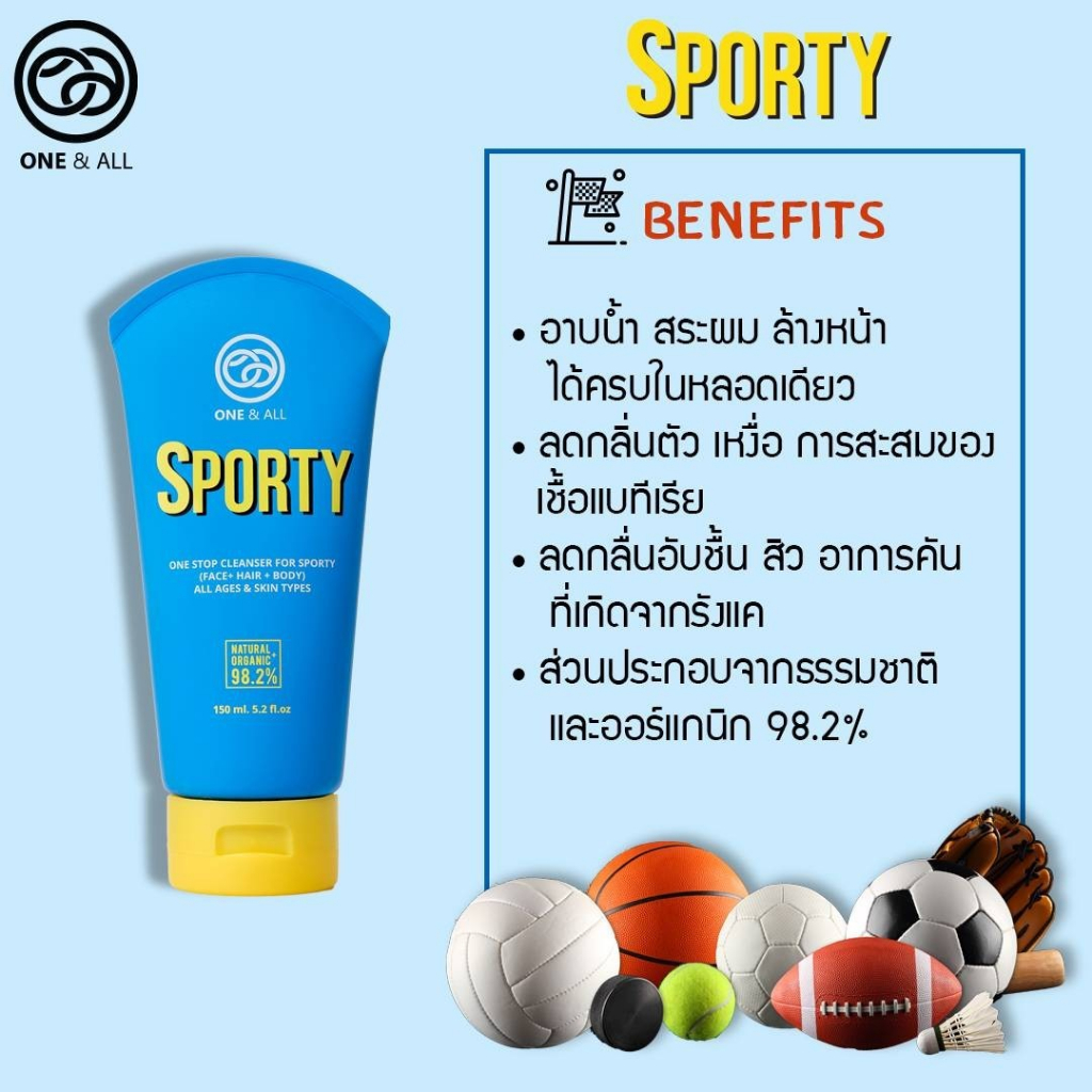 One & All Sporty เจลทำความสะอาดผิวและผม สำหรับกิจกรรมกลางแจ้ง (Face+Hair+Body)