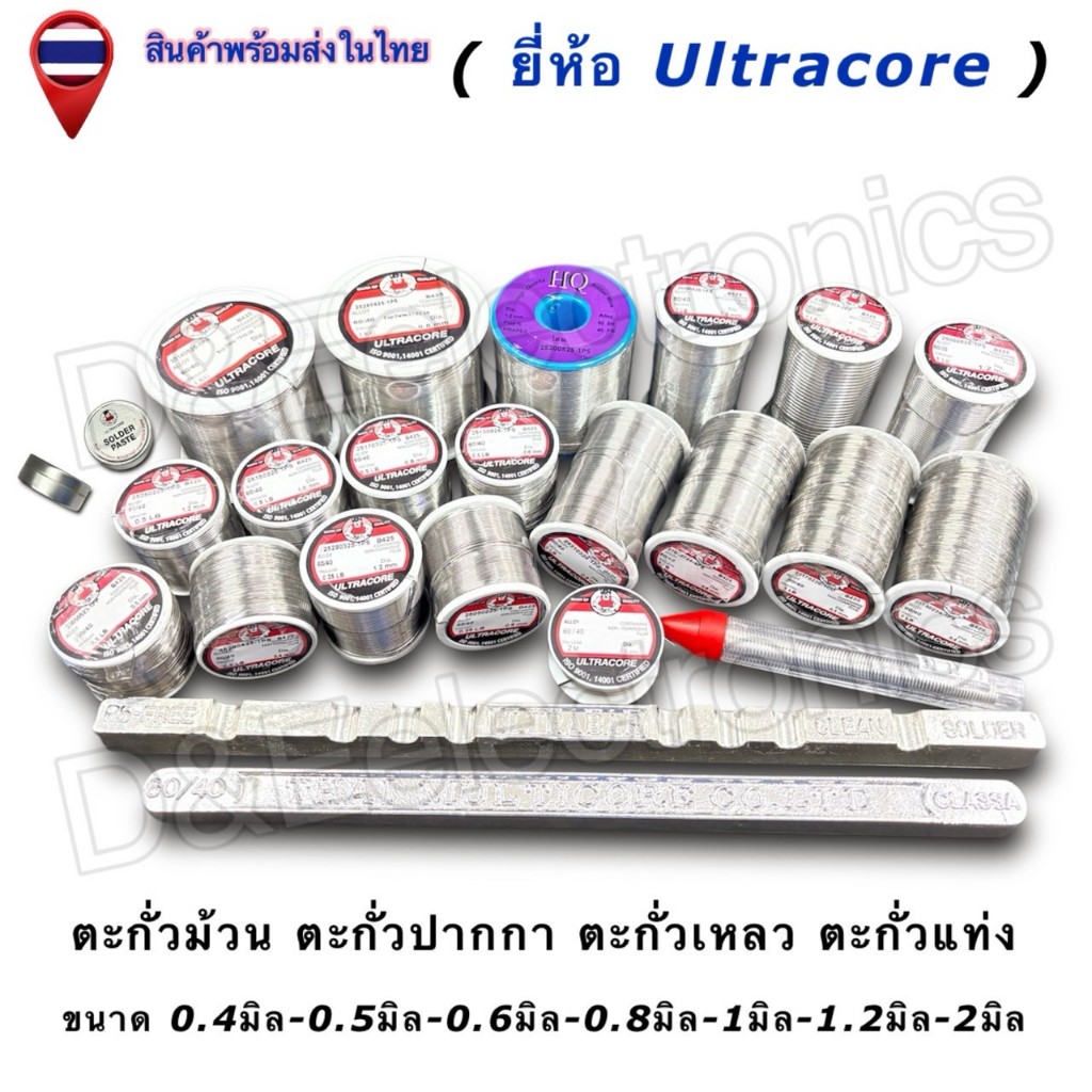 ตะกั่วบัดกรี Ultracore 60/40 (มีฟลักซ์) Solder Wire ขนาด 0.4-1.2mm น้ำหนัก 0.5LB (1ชิ้น/ออเดอร์)