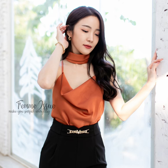 FEMME ISSUE ⭐️ เสื้อสายเดี่ยวซาตินคอถ่วง แถมโชคเกอร์คอ มีหลายสี ⭐️ สินค้าขายดี