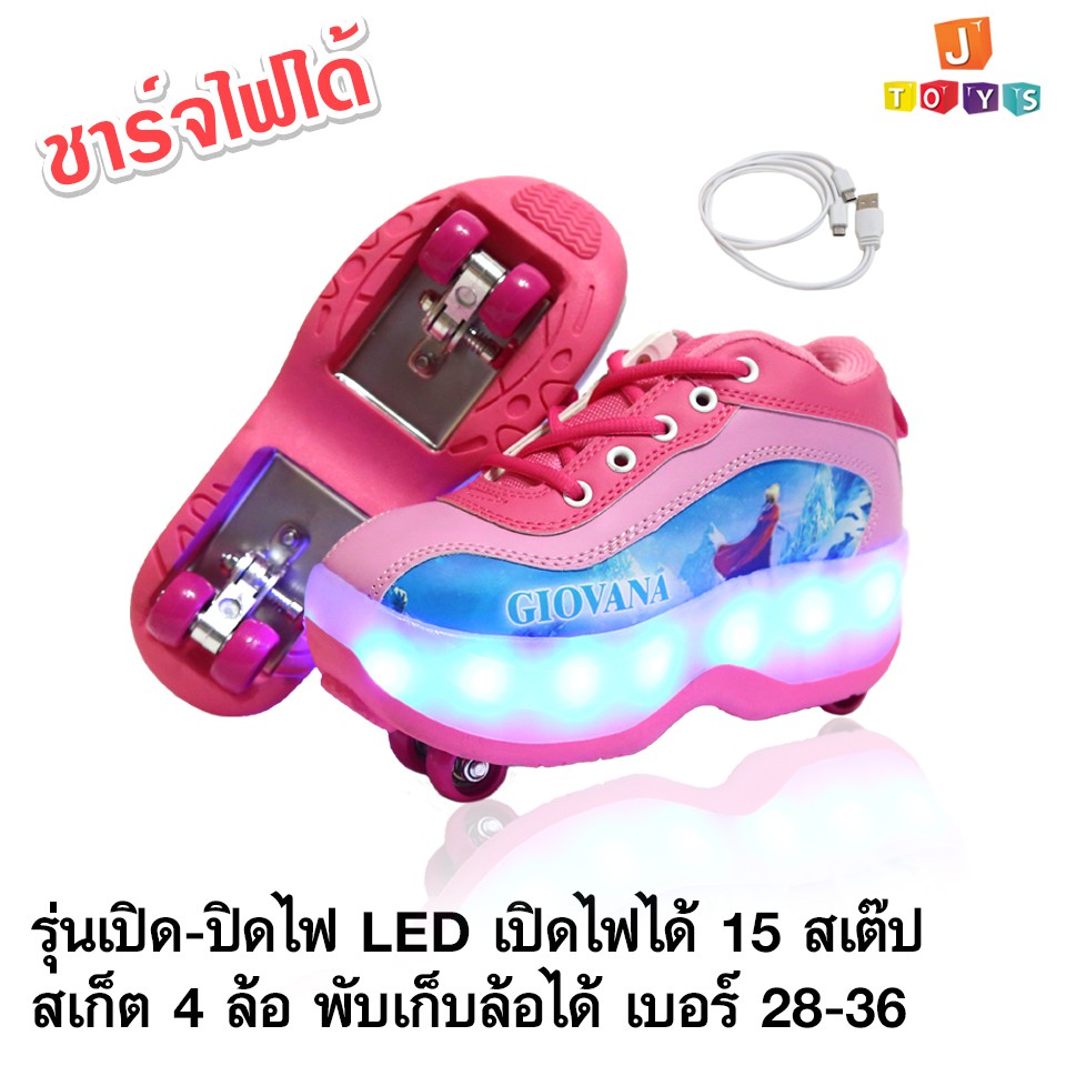 รองเท้าสเก็ต 4 ล้อ รองเท้ามีล้อ มีไฟ LED 790 ไฟกระพริบได้ 15 สเต็ป รองเท้าติดล้อ ชาร์จไฟได้ Jtoysshop