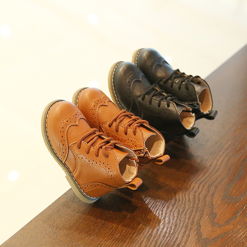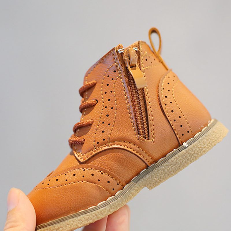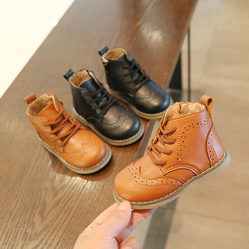 รองเท้าบู้ทส์มาร์ตินแฟชั่นสําหรับเด็กผู้ชายผู้หญิงอายุ 1-6 ปีสีดําสไตล์อังกฤษ