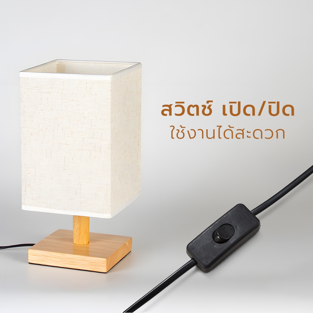 Thejoyful โคมไฟข้างเตียงห้องนอน โคมไฟกลางคืน wooden lamp แสงอบอุ่นLED ขั้วE27