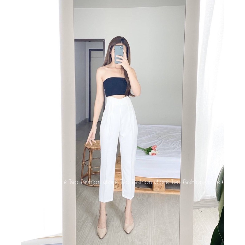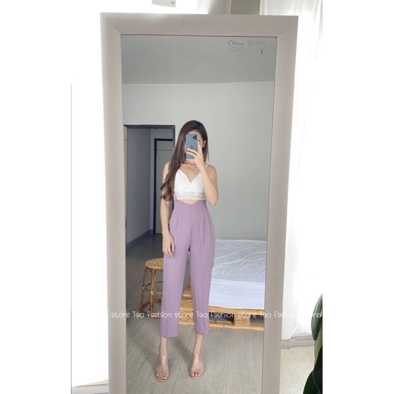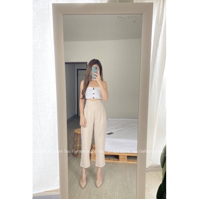 กางเกงเอวสูงขา 8 ส่วนขอบโค้งผ้าเปเป้