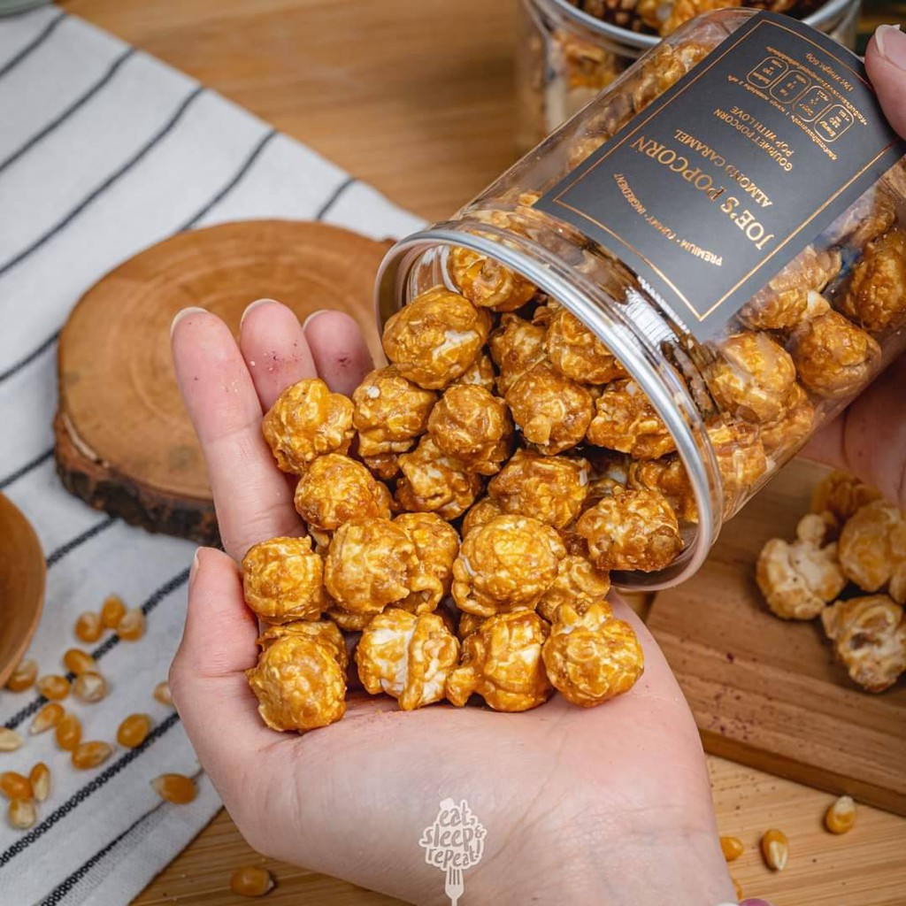 โจป๊อปคอร์น Joe's Popcorn ข้าวโพดอบกรอบ แบบกระปุก 60กรัม รสอัลมอนด์คาราเมล