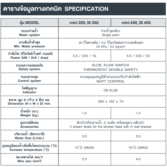 Rinnai เครื่องทำน้ำอุ่น รุ่น BI-350 / BI-450 กำลังไฟฟ้า 3500,4500 วัตต์ หม้อต้มทองแดง
