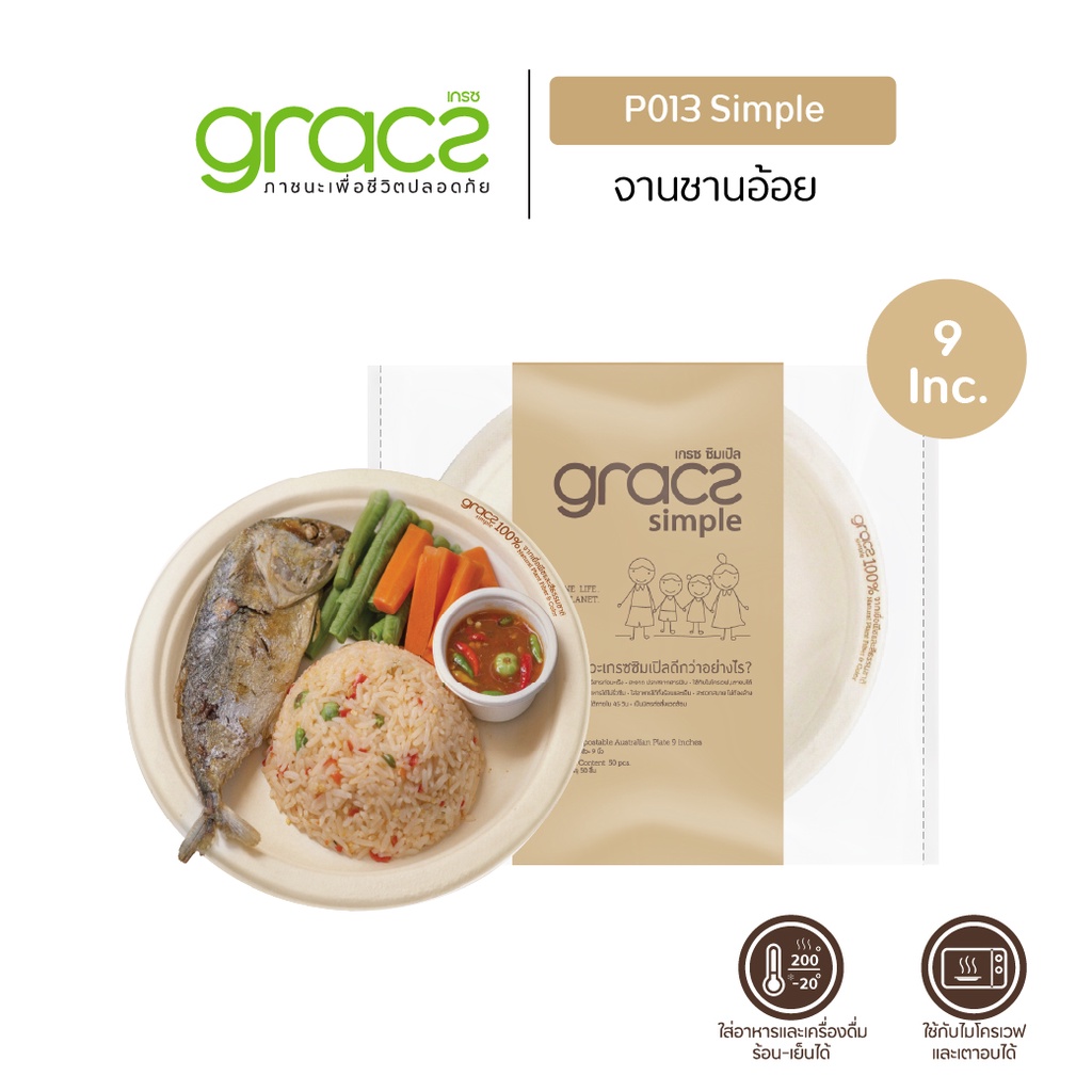 GRACZ จานอาหาร 9 นิ้ว รุ่น P013 (แพ็ค 50 ชิ้น) (เกรซ ซิมเปิล) จานกระดาษ จานชานอ้อย เข้าไมโครเวฟได้