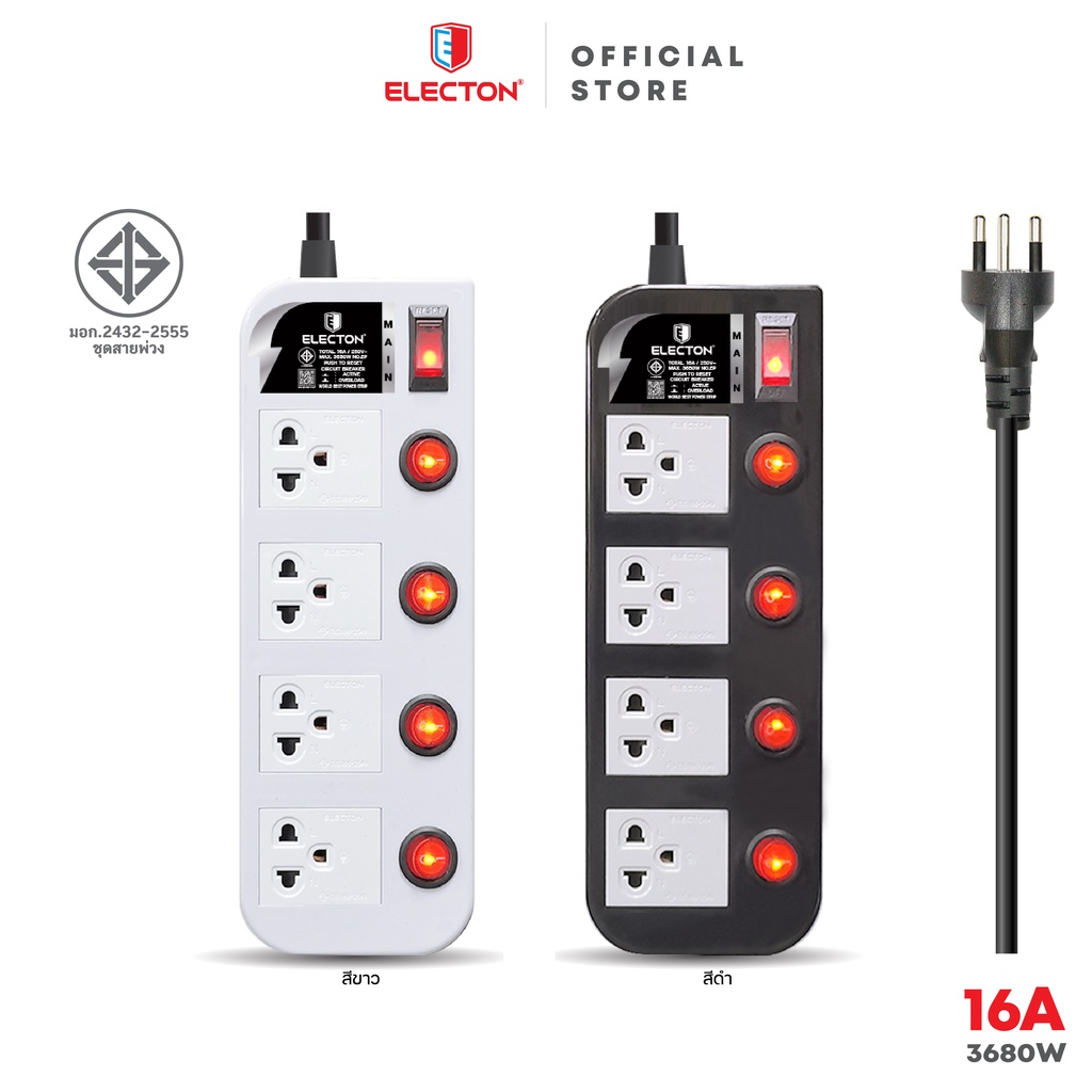 ELECTON อิเล็คตัน ปลั๊กไฟ มอก.2432-2555 รุ่น EP-GS4 16A (สีขาว, สีดำ)
