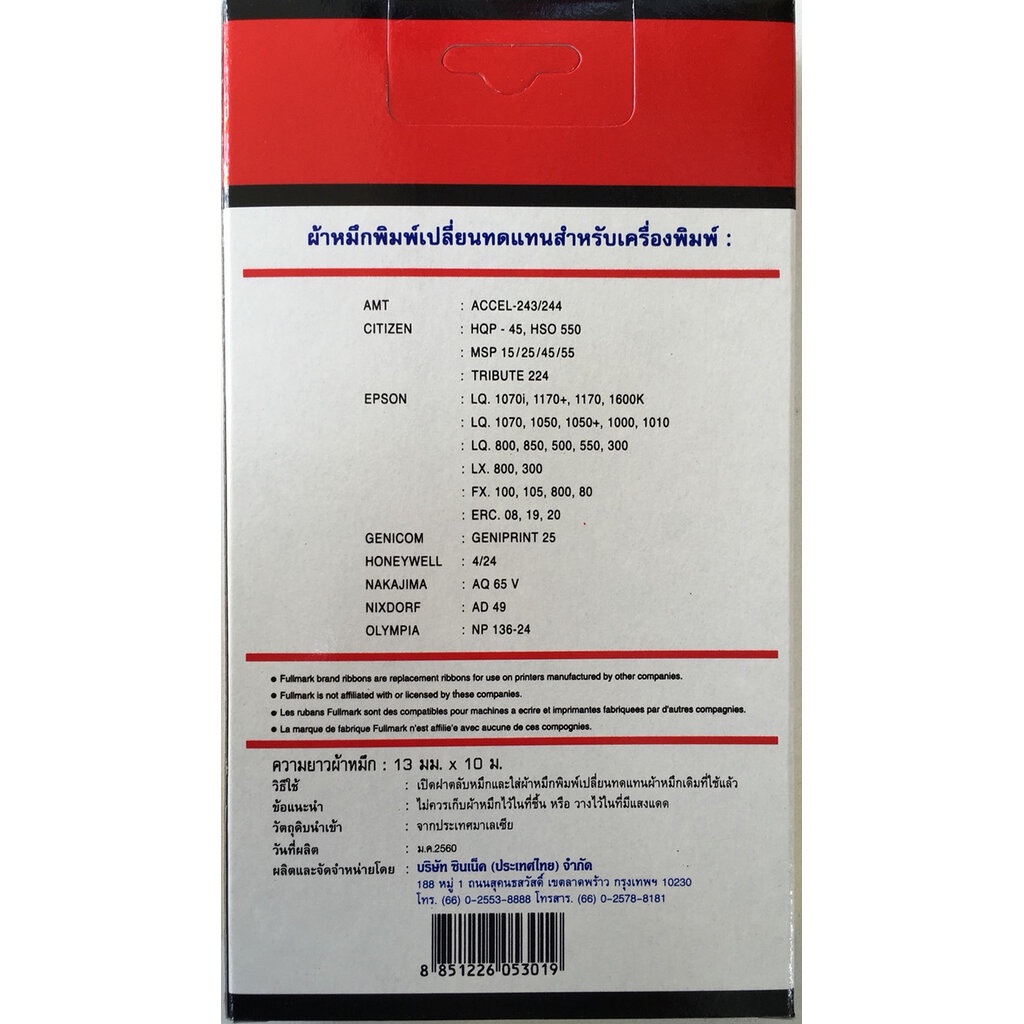 Fullmark Pack3 ผ้าหมึกชนิดเติม (Refill) สำหรับ Epson LQ.1170/1050/800/300/MX.100 (13mmX10m) 1กล่อง มีผ้าหมึก 3 ชิ้น