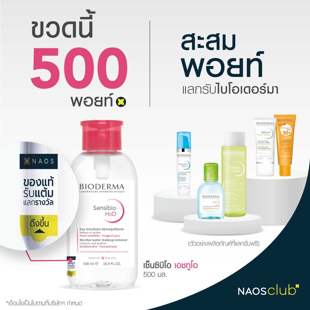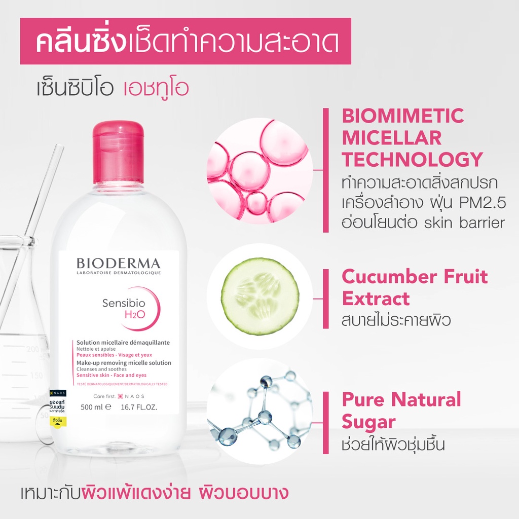 Bioderma Sensibio H2O 500 ml (ฝาปั๊ม) ไมเซล่าคลีนซิ่งวอเตอร์ สำหรับผิวแพ้ ระคายง่าย