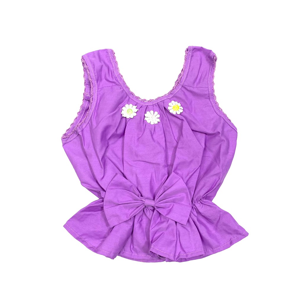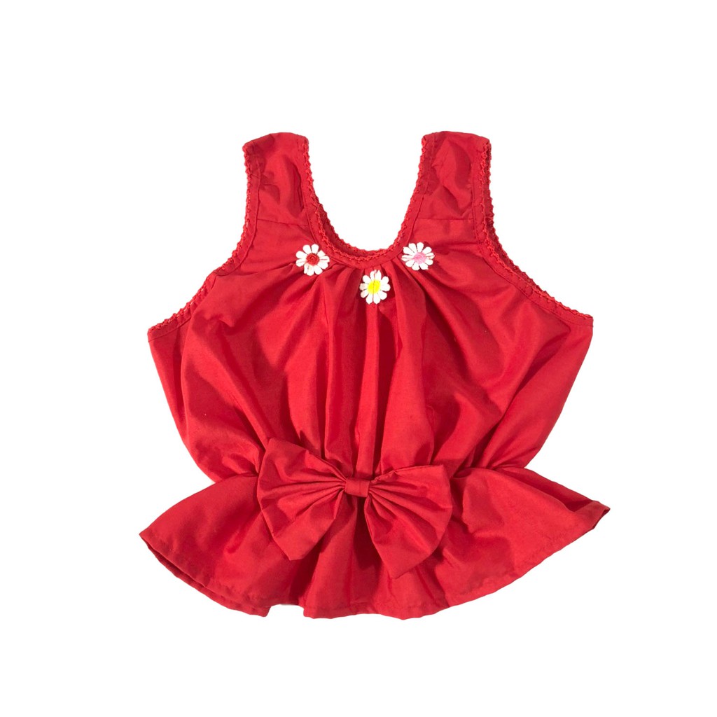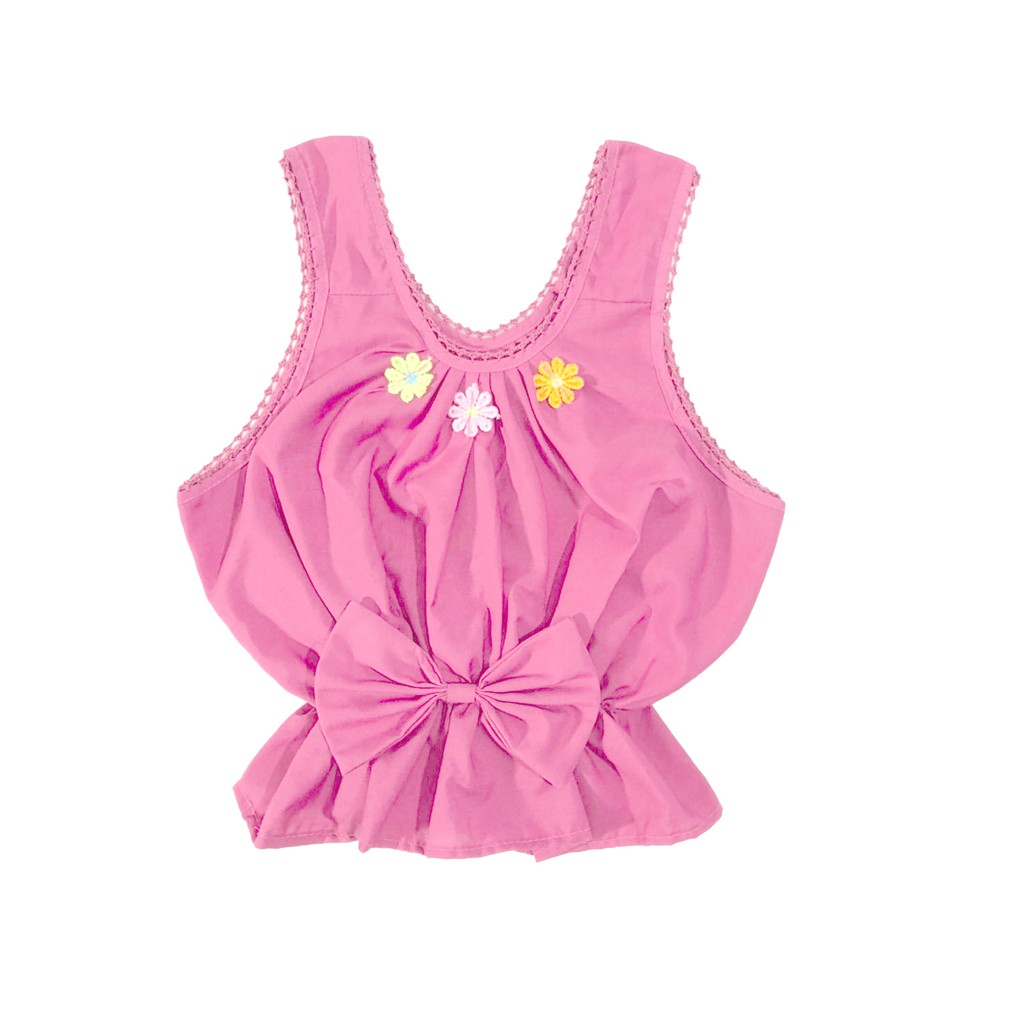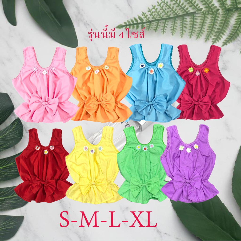เสื้อคอกระเช้าเด็ก มีโบว์และดอกไม้ ผ้าโทเร คอถักแฟชั่น กำลังมาแรง มาใหม่ (MBD9)