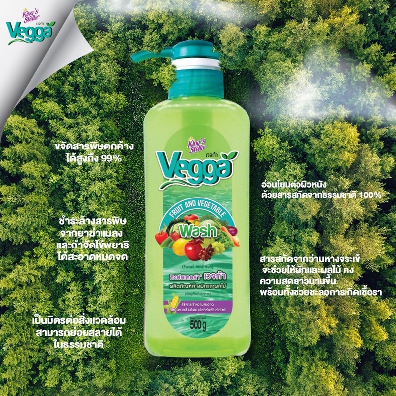 Vegga เวจก้า น้ำยาล้างผัก ออแกนิค 500 มล.น้ำยาล้างผักและผลไม้ คิงส์สเตลล่า เวจก้า น้ำยาล้างผลไม้