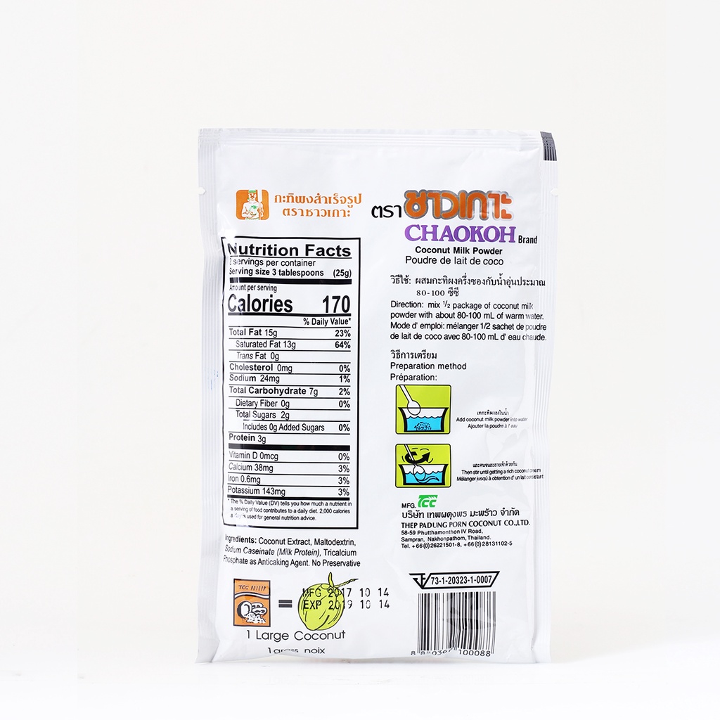 CHAOKOH กะทิผงสำเร็จรูป ตราชาวเกาะ ขนาด 60 กรัม (12 ซอง)