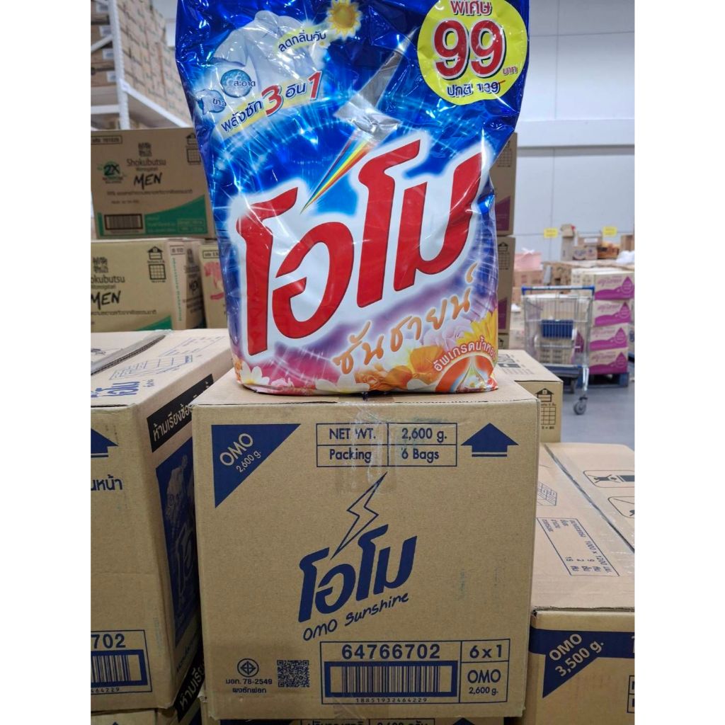 ( 1 ถุง ) โอโม ซันชายน์ สูตรมาตรฐาน สำหรับซักมือและเครื่องฝาบน 2600 กรัม