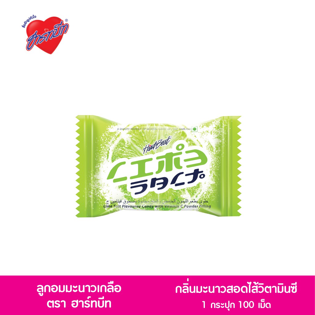 Hartbeat (ฮาร์ทบีท) LimeSalt ลูกอมรสมะนาวเกลือสอดไส้วิตามินซี(กระปุก100เม็ด)