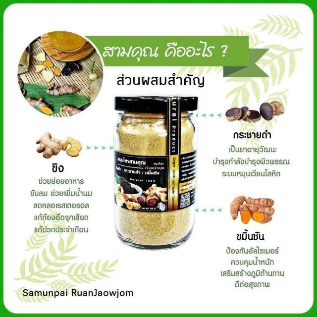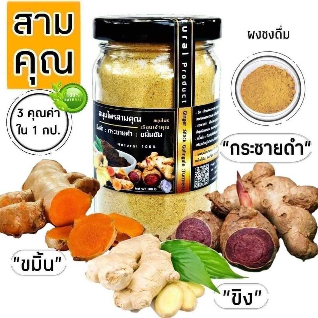 R01 สามคุณ ขิงดำ กระชายดำ ขมิ้นชัน รวม 3 ชนิดในกระปุกเดียว ขิง ขมิ้น กระชายดำ สามขิง 3 in 1 ขิงไม่มีน้ำตาล สมุนไพรล้วน