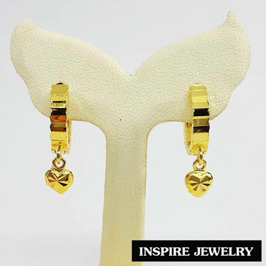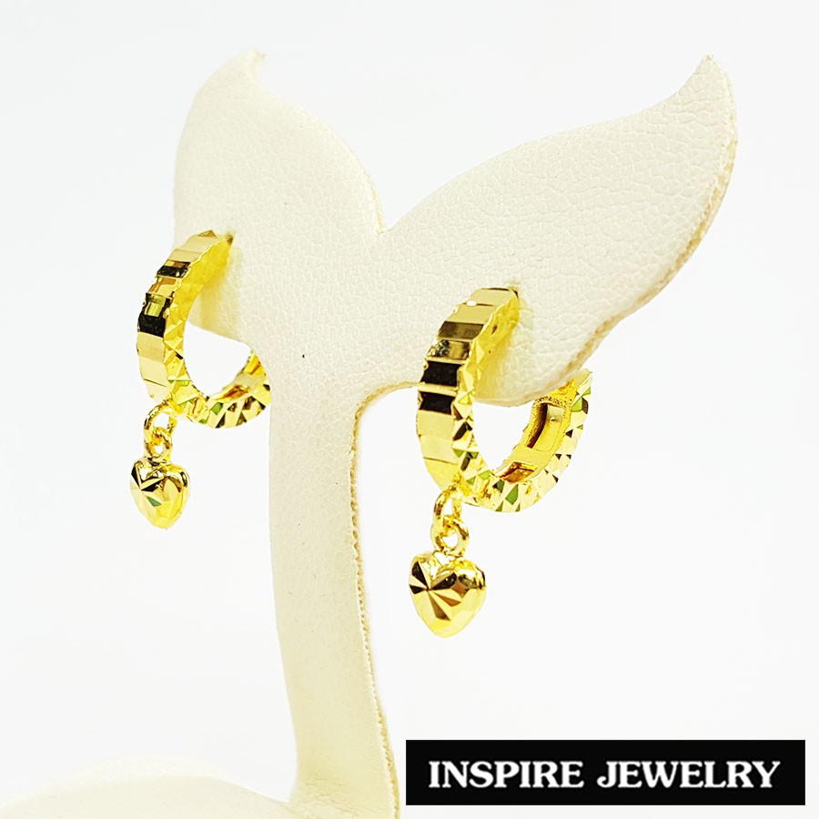 Inspire Jewelry (NN) ,ต่างหูทอง ตอกลายหรู ห้อยหัวใจตอกลาย งานร้านทอง ปราณีต หุ้มทองแท้100% 24K สวยหรู (Thai Quality)