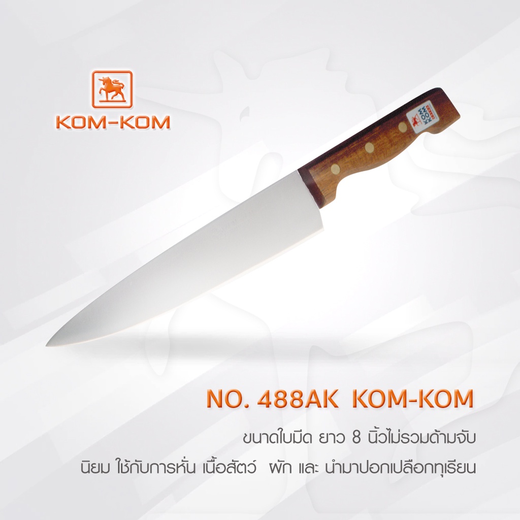 KOMKOM 488AK มีดเนื้อ มีดปอกทุเรียน ด้ามไม้ (หนาคมพิเศษ) 8 นิ้ว มีดคมคม