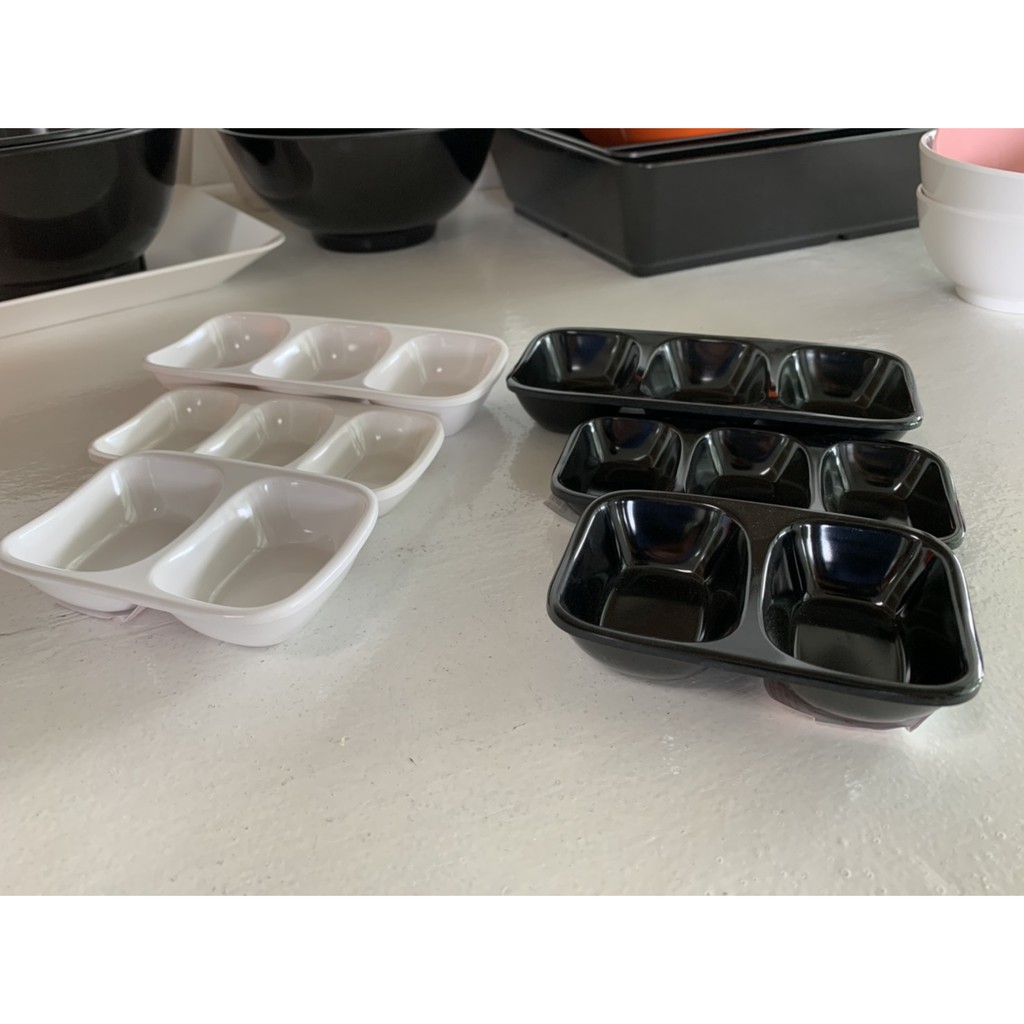 Figure [3 ชิ้น] ถ้วยน้ำจิ้มเมลามีน 2 ช่อง 3 ช่อง ขนาด 4 - 6.25 นิ้ว รุ่น D883