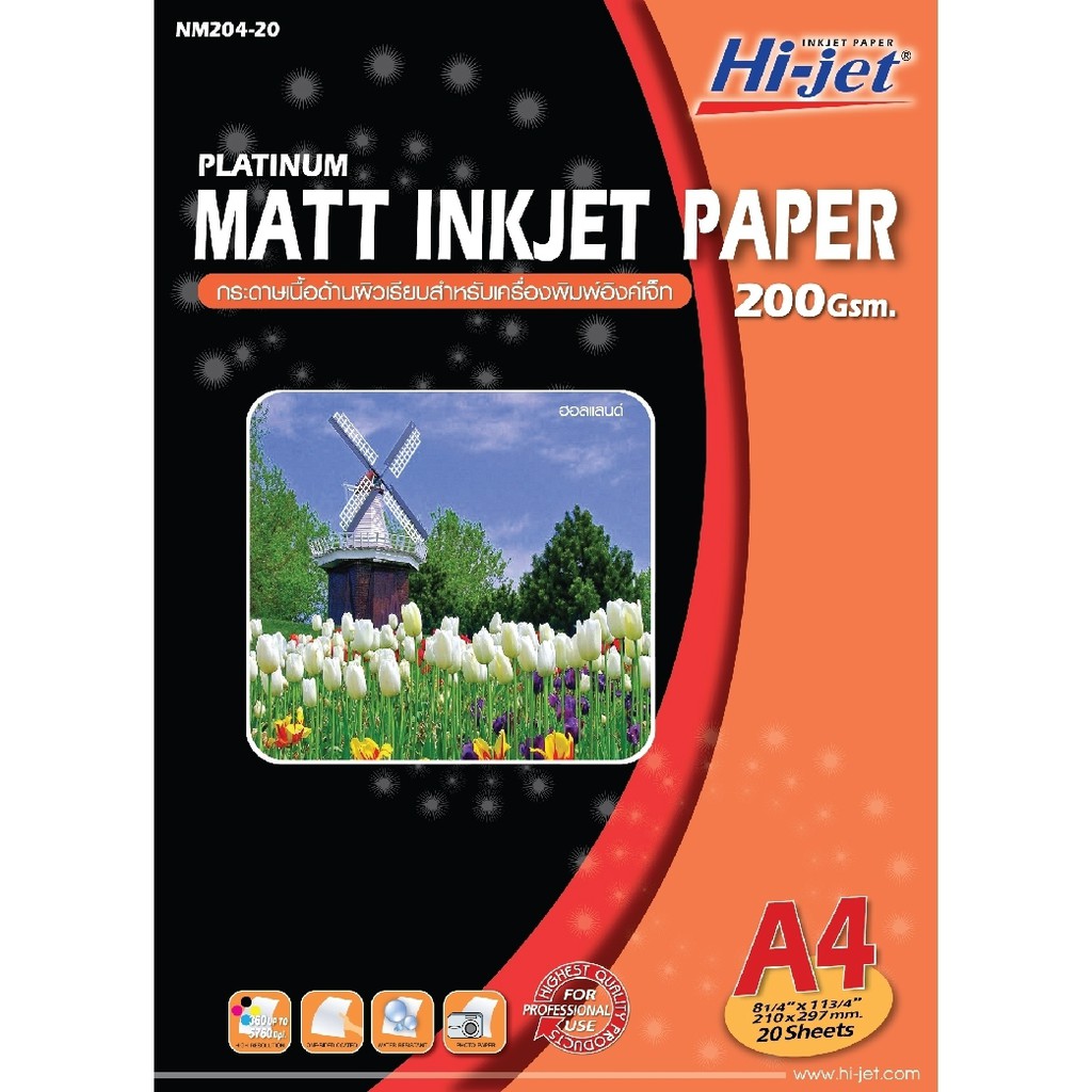 Hi-jet การ์ด ผิวด้าน Platinum Matt Inkjet Paper 200 แกรม A4 20 แผ่น