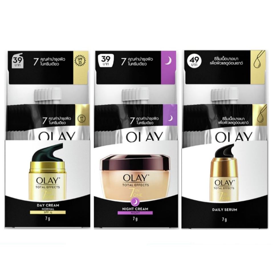 OLAY Total Effects 7 In 1 โอเลย์ โททัล เอฟเฟ็คส์ เดย์/ไนท์ ครีม / เซรั่ม แบบซอง [1 กล่อง มี 6 ซอง] 7 กรัม