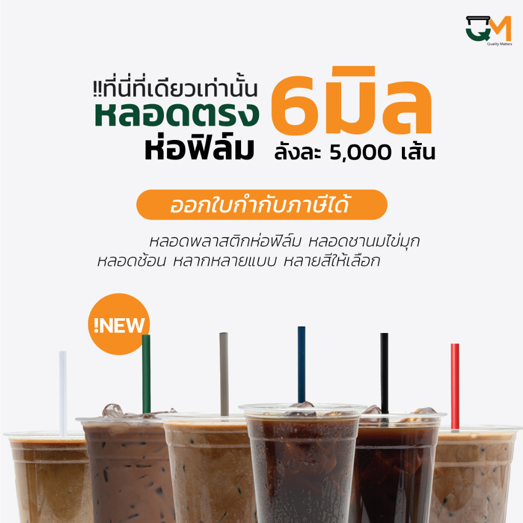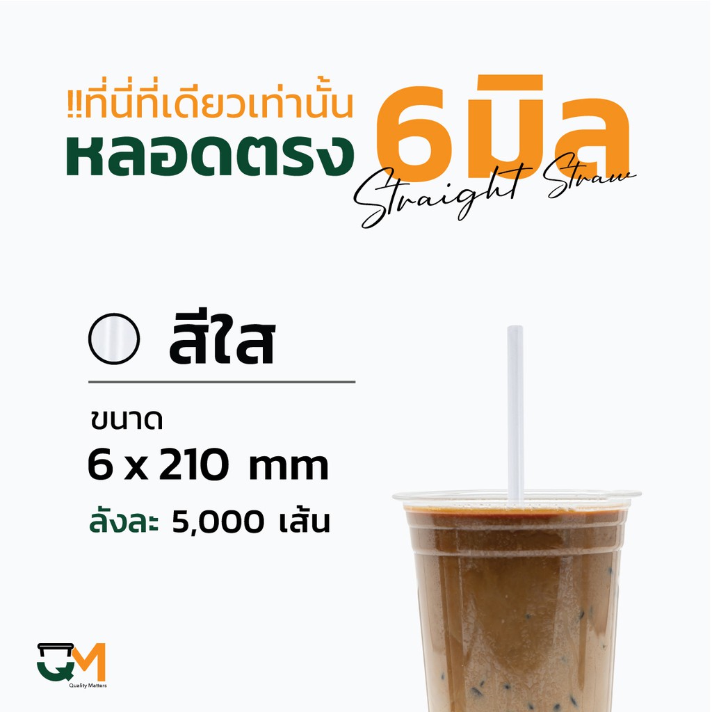หลอดพลาสติก หลอดตรงห่อฟิล์ม 6 มิล บรรจุ 5,000เส้น