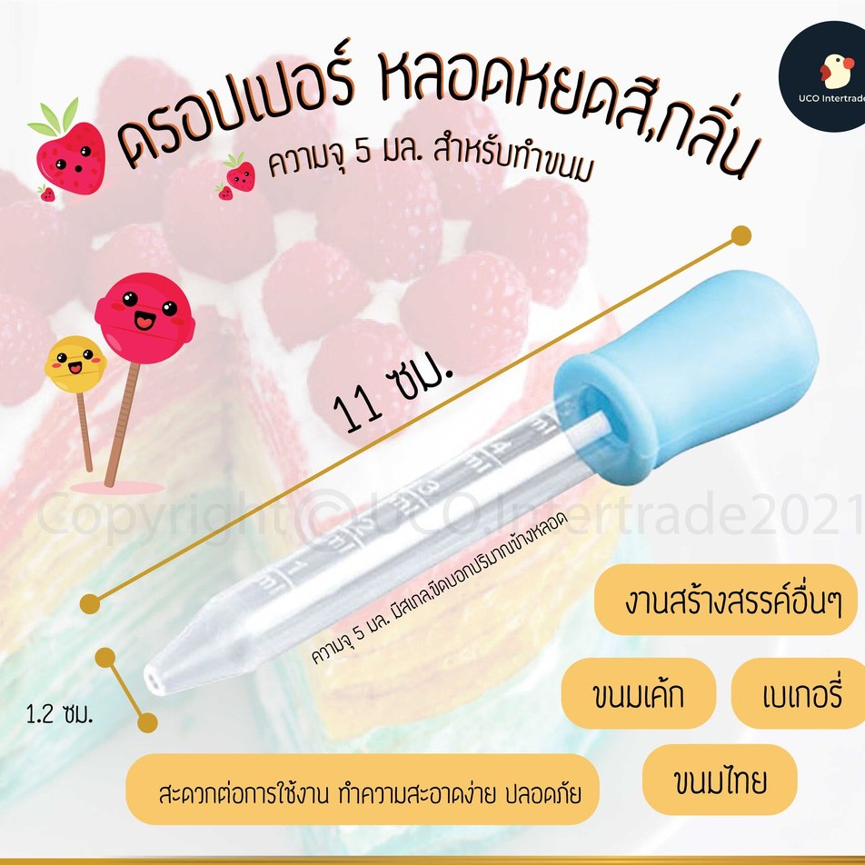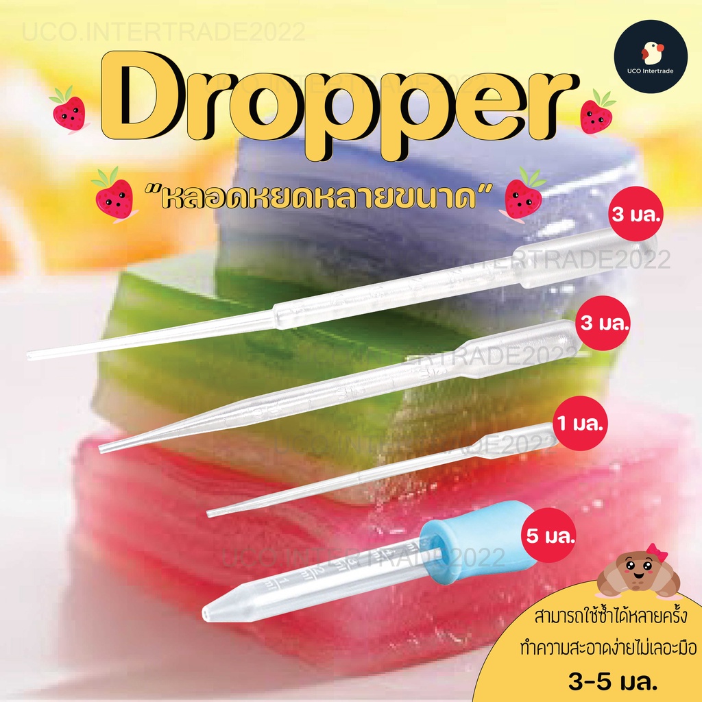 หลอดหยด ดรอปเปอร์ หลอดหยดสี ทำขนม น้ำหอม ขนาด 5มล. ผลิตจากพลาสติกและซิลิโคน เกรด AAA ไม่แตก เกรดอาหาร ถอดล้างง่าย