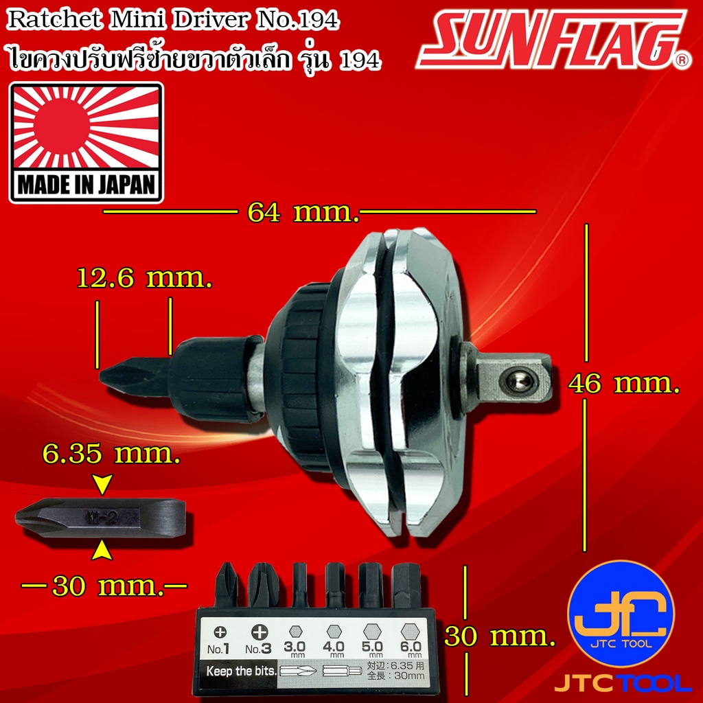 Sunflag ชุดไขควงเล็กปรับฟรีซ้ายขวา รุ่น194 - Ratchet Mini Drivers No.194