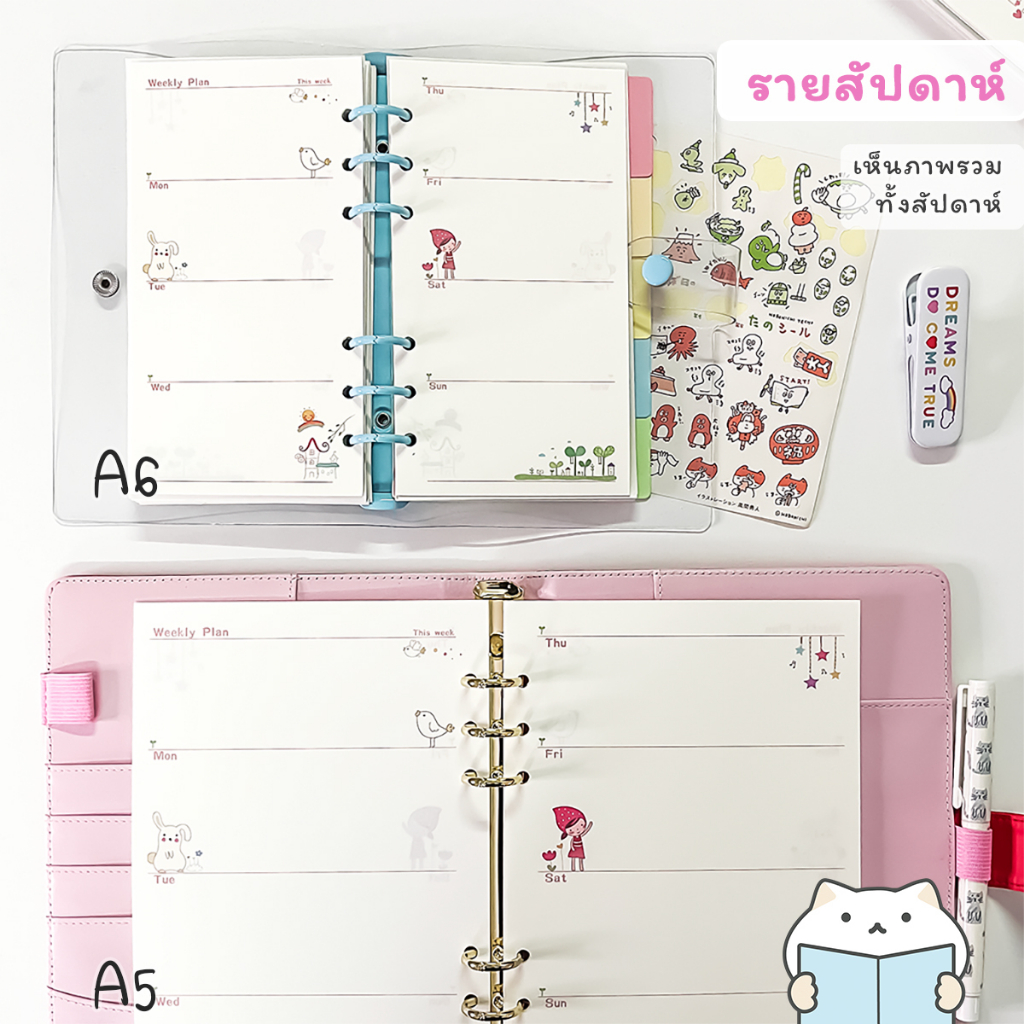 กระดาษรีฟิล 6 รู Cartoon Plan [90 หน้า] ⭐️ A6 A5 Planner Refill Paper 6 Holes สมุดแพลนเนอร์ ไดอารี่
