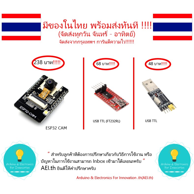 ESP32-CAM WiFi+Bluetooth Module บอร์ด ESP32 มาพร้อมกล้อง มีเก็บเงินปลายทางพร้อมส่งทันที !!!!!!!