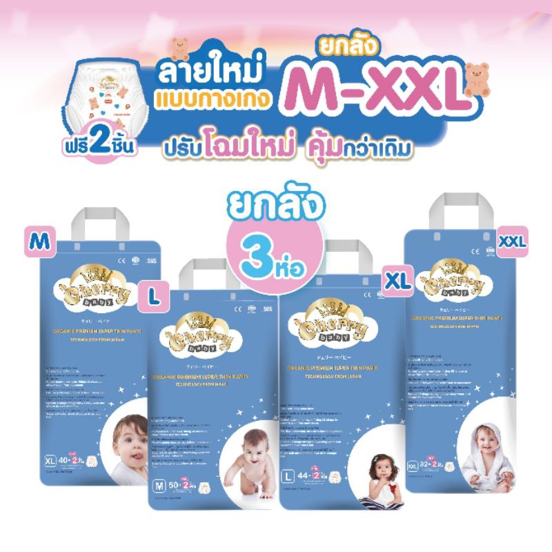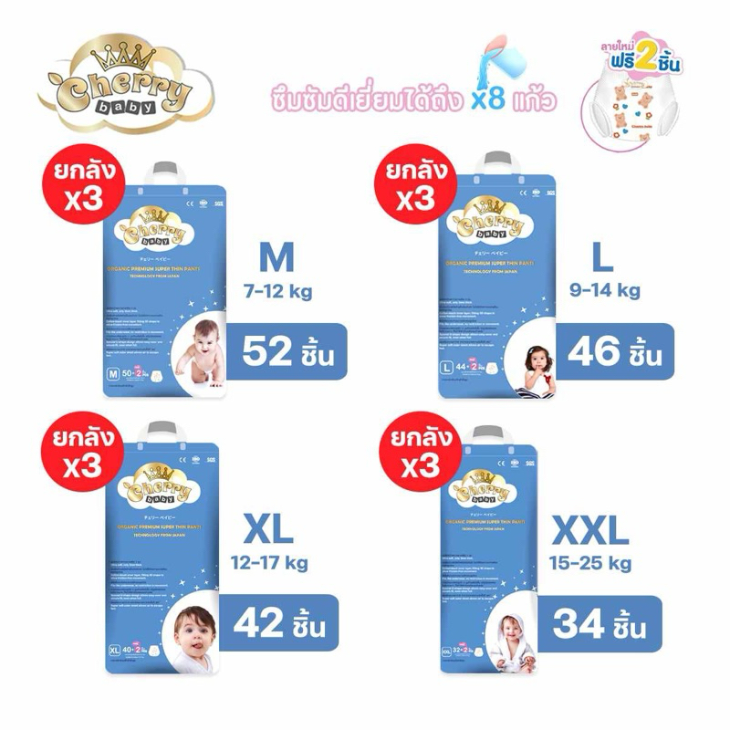โฉมใหม่ คุ้มกว่าเดิม🍒ยกลัง3ห่อ Small Organic (ห่อกลาง) Cherry baby เชอรี่เบบี้ผ้าอ้อมสำเร็จรูป ซึมซับน้ำได้ 8 แก้ว