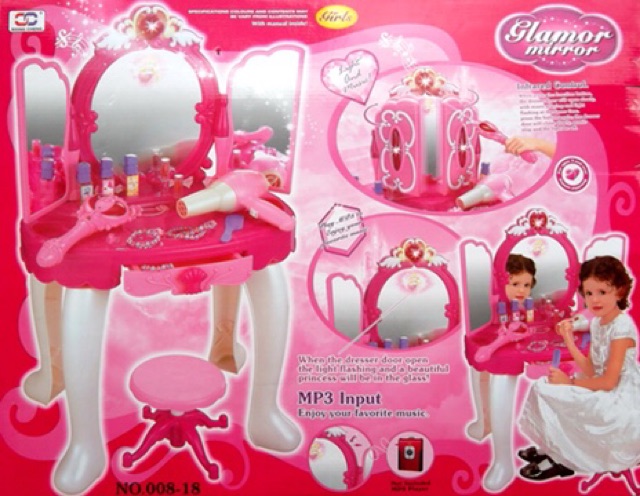 โต๊ะเครื่องแป้ง เจ้าหญิงมีคฑาเสก ของเล่นแต่งหน้า ของเล่นแต่งตัว ของเล่นโต๊ะเครื่องแป้ง กระจกใสปิ๊งส่องได้ กระจกเปิด-ปิด