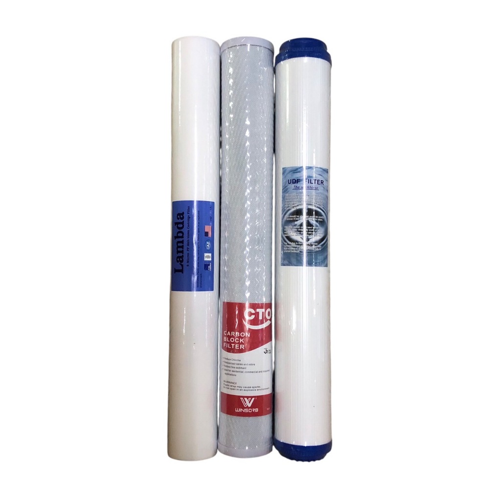 ชุดไส้กรองน้ำ 3 ขั้นตอน 20 x 2.5 นิ้ว (PP, Carbon, Resin/GAC) ใช้ได้กับตู้น้ำหยอดเหรียญทุกยี่ห้อ