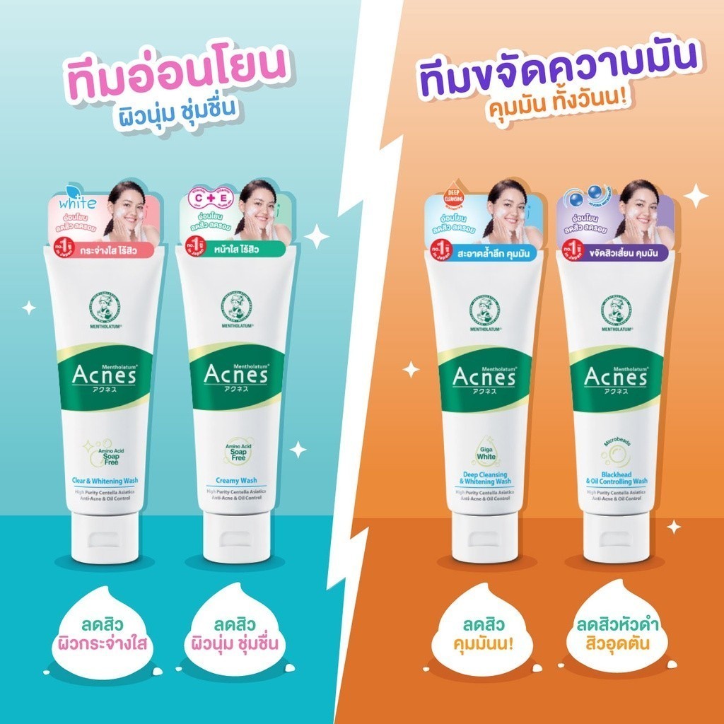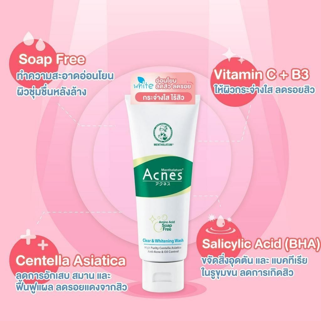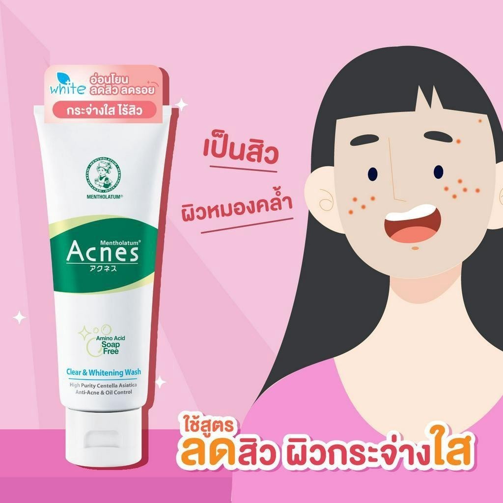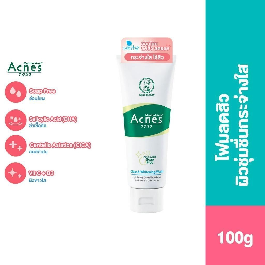 Mentholatum Acnes Clear & Whitening Wash 100g. เมนโทลาทั่ม แอคเน่ โฟมลดสิวผิวชุ่มชื่นกระจ่างใส 100gram