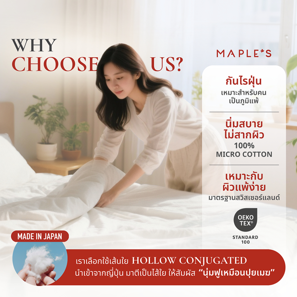MAPLE'S ผ้าปูที่นอนรัดมุม สูง11-14นิ้ว 550-770เส้น รุ่นSolid/Jacquard กันไรฝุ่นสําหรับคนเป็นภูมิเเพ้