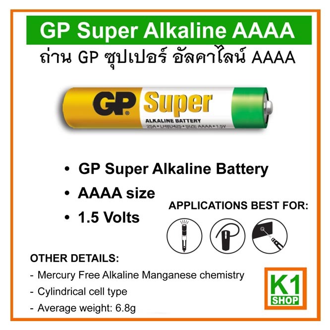 ถ่านขนาด AAAA (4A) GP ถ่าน Super Alkaline 2 ก้อน