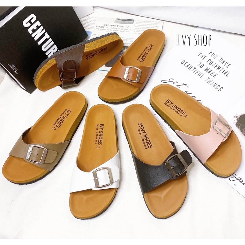 รองเท้าแตะ IVY SHOES (*แนะนำลด 1 ไซส์ ) สไตล์วินเทจ ไบเก้น พื้นนุ่ม สวมเข็มขัด 1 ตอน มี 7 สี