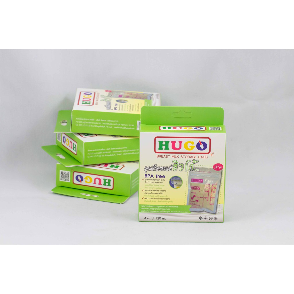 HUGOถุงเก็บนมแม่ HUGO 4ออนซ์ ฮิวโก้ 1กล่องมีถุงเก็บนมแม่ 20ใบ แถมแก้วป้อนนมแม่ฮิวโก้ 1ใบ ลดการเหม็นหืน แข็งแรง