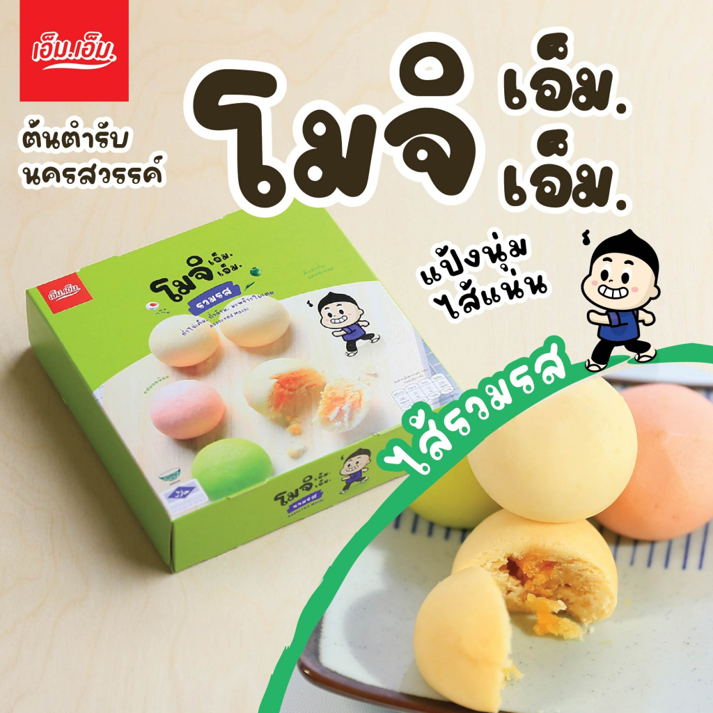 ขนมโมจิ เอ็ม.เอ็ม. นครสวรรค์ ไส้รวมรส แป้งนุ่มมาก มีฮาลาล