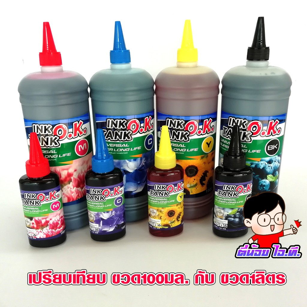 (OK-ขวดลิตร)✨ หมึกเติม ปรินเตอร์ INKTANK OK ขนาดใหญ่ ขวดลิตร 1000cc 💥เติมปริ้นเตอร์ได้ทุกรุ่น ทุกยี่ห้อ💦