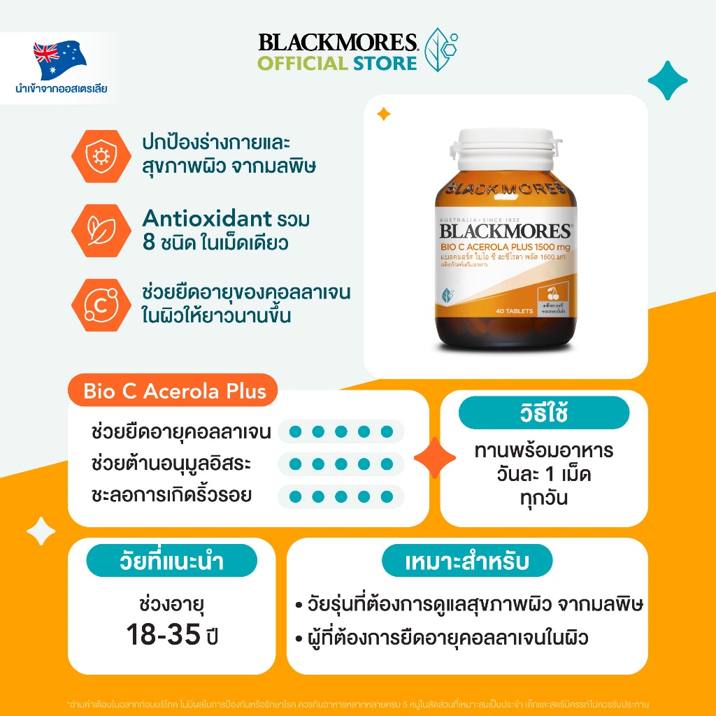 Blackmores Bio C Acerola Plus 1500mg (40 tabs) แบลคมอร์ส ไบโอ ซี อะซีโรลา พลัส 1500 มก. (40 เม็ด)