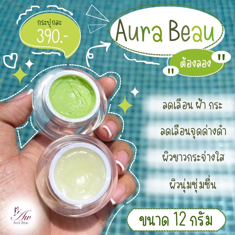 ครีมออร่าบู แพ็คคู่กลางวัน+กลางคืน สูตรเวชสำอางค์ ขนาด 12 กรัม - Aura Beau Cream