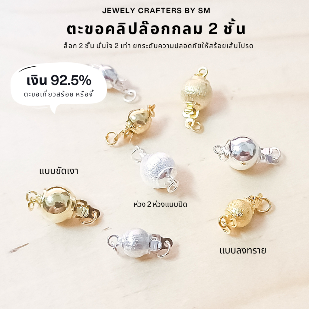SM ตะขอคลิปล็อกกลม 2 ชั้น เงินแท้ 92.5% อะไหล่ตัวล็อกสำหรับสร้อยและจี้